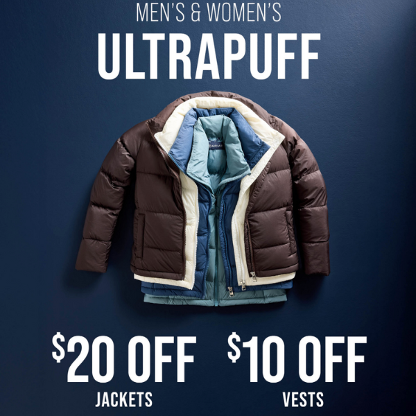 While supplies last. Offer applies to full-priced men's & women's UltraPuff jackets and vests purchased between 11/15/25-12/2/25. See store associate for details. Discount will be applied at checkout. Cannot be combined with any other discount or coupon on promotional products. Other restrictions may apply.